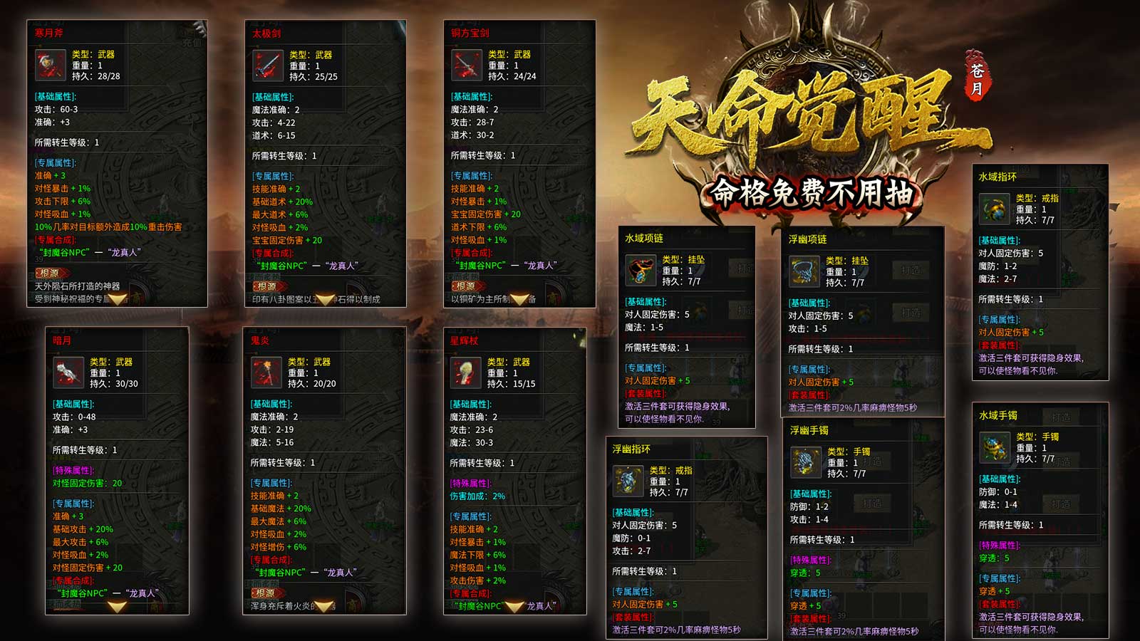 2.所有装备可通过打怪掉落获得,Boss爆率极高